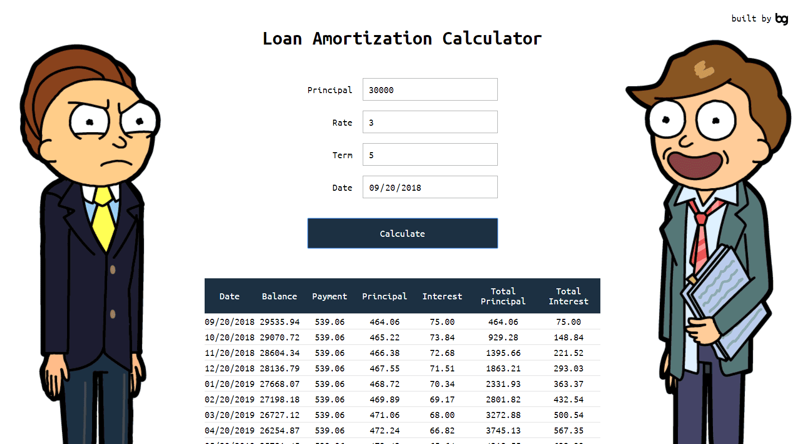 After it was all over with, I wished I had a tool help make faster financial decisions during the negotiations. So with my newfound web development skills I sat down at the computer and made my own loan amortization calculator called Amorty. I knew I had to come up with a catchy name, and I was cracking myself up with the Rick & Morty reference, so I stuck with it.