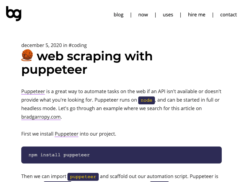 , and can be started in full or headless mode. Let's go through an example where we search for this article on bradgarropy.com.